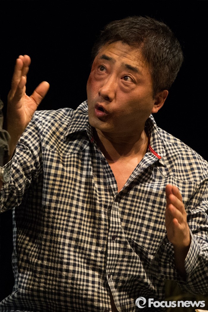 (서울=포커스뉴스) 27일 오전 서울 중구 명동예술극장에서 열린 연극 '날 보러와요' 프레스콜에 배우 류태호(용의자)가 연기하고 있다.