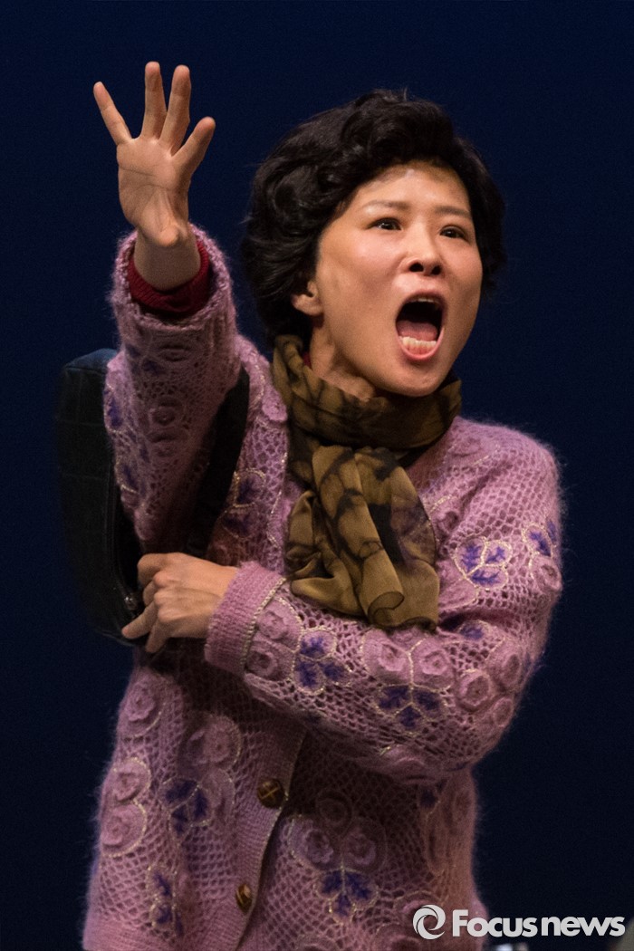 (서울=포커스뉴스) 27일 오전 서울 중구 명동예술극장에서 열린 연극 '날 보러와요' 프레스콜에 배우 황석정(남씨부인)이 연기하고 있다.