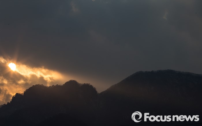 (포천=포커스뉴스) 26일 경기 포천시 지장산 위로 석양이 비치고 있다. 철원군과 경기도 포천시 및 연천군에 걸쳐있는 지장산은 지장보살의 누운 모습을 빼닮았다고 알려져 있다.