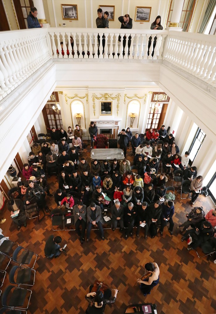 (서울=포커스뉴스) 김종덕 문화체육관광부장관이 27일 서울 종로구 덕수궁 석조전 대한제국역사관에서 열린 희망 콘서트에 참석해 공연을 관람하고 있다.