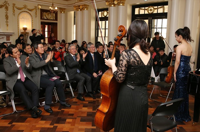 (서울=포커스뉴스) 김종덕 문화체육관광부장관이 27일 서울 종로구 덕수궁 석조전 대한제국역사관에서 열린 희망 콘서트에 참석해 공연을 관람하고 있다.