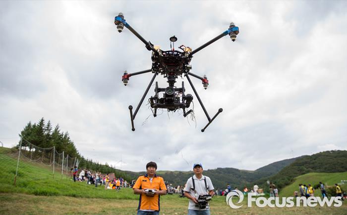 또한 항법장치, 충돌회피시스템 등 정보기술(IT)·소프트웨어(SW)와의 융합을 통한 고부가가치 시스템 개발로 제품 차별화도 추진한다.(평창=포커스뉴스) 12일 오후 강원도 평창군 대관령 삼양목장에서 열린 '2015 대한민국 드론의 날'에서 드론이 비행을 하고 있다. 2015.09.12 강진형 기자