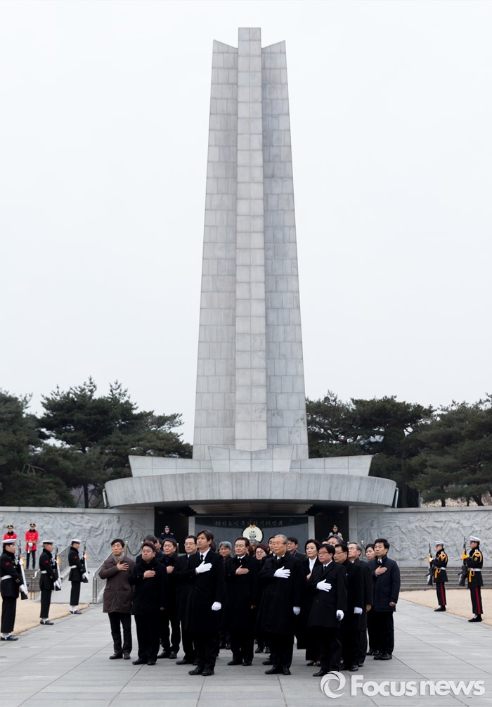 (서울=포커스뉴스) 28일 오전 서울 동작구 국립서울현충원에서 김종인 선거대책위원장 겸 비대위원장이 현충탑 참배를 마친 뒤 나서며 국민의례를 하고 있다.