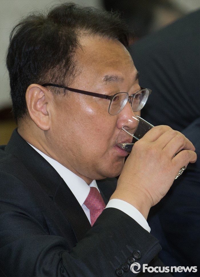 (서울=포커스뉴스) 28일 오전 서울 종로구 정부서울청사에서 열린 국가정책조정회의에 참석한 유일호 경제부총리 겸 기획재정부 장관이 물을 마시고 있다.