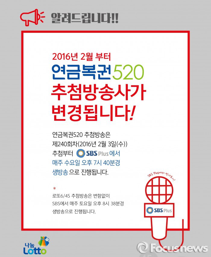 (서울=포커스뉴스) 연금복권 추첨방송사가 바뀐다.