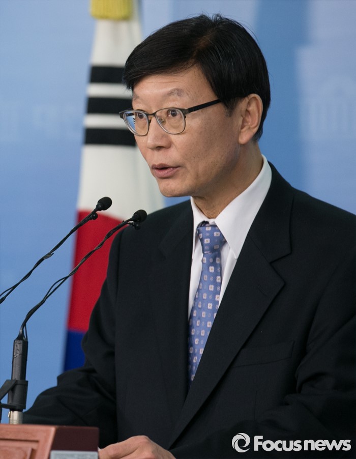(서울=포커스뉴스) 황창화 전 국회도서관장이 28일 오전 서울 여의도 국회 정론관에서 기자회견을 열고 더불어민주당 후보로 20대 총선 서울 노원병 지역에 출마할 것을 선언하고 있다.