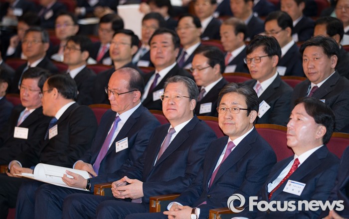 (세종=포커스뉴스) 임환수 국세청장이 28일 오전 세종시 정부세종2청사 국세청에서 열린 전국세무관서장회의에 참석해 2016년 국세행정 운영방안 발표를 듣고 있다.