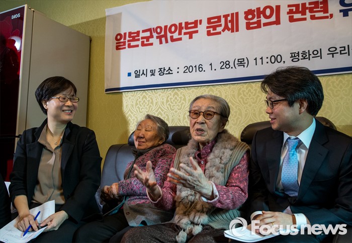 (서울=포커스뉴스) 28일 오전 서울 마포구 평화의 우리집에서 열린 일본군'위안부' 문제합의 관련, 유엔 청원서 제출 기자회견에 참석한 김복동 할머니가 정부를 규탄하는 발언을 하고 있다.