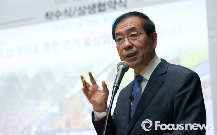 (서울=포커스뉴스) 박원순 서울시장이 28일 오전 서울 종로 세운상가에서 열린 세운상가 재생사업 현장 설명회에 참석해 사업 발표를 하고 있다.