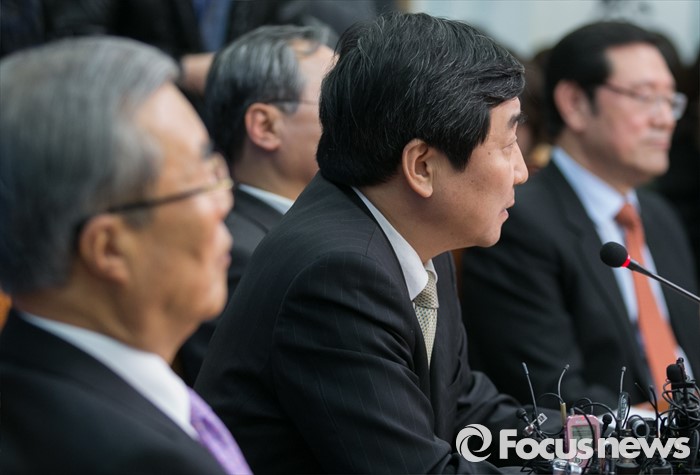 (서울=포커스뉴스) 28일 오전 서울 여의도 국회에서 열린 더불어민주당 첫 비대위원회의에 참석한 이종걸 원내대표가 발언하고 있다.