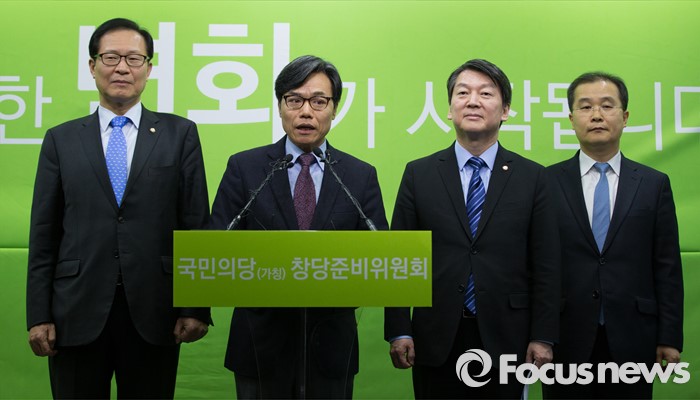 (서울=포커스뉴스) 정재흠 회계사가 28일 오후 서울 마포구 국민의당 당사에서 열린 입당기자회견에서 입당 소감을 밝히고 있다. (왼쪽부터) 문병호 창준위 부위원장, 정재흠, 안철수 의원, 이건태 전 검사