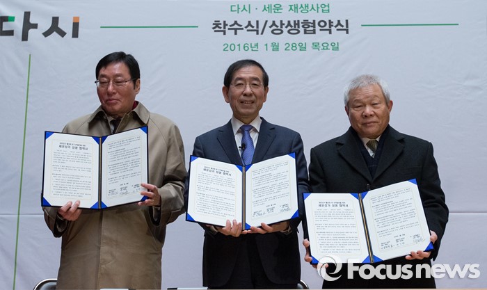 | △ 세운상가 재생사업, 상가 대표들과 협약식 갖는 박원순 |