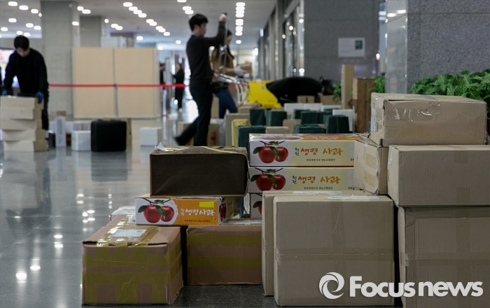 (서울=포커스뉴스) 설을 열흘여 앞둔 28일 오후 서울 여의도 국회 의원회관에 의실로 배달된 택배들이 쌓여 있다.