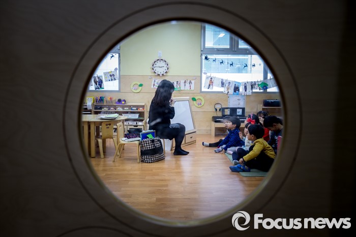 (서울=포커스뉴스) 만3-5세 유아에게 공통적으로 제공하는 교육, 보육 과정인 누리과정 예산 파행으로 보육대란이 이어지고 있는 28일 오후 서울 종로구 한 어린이집에서 어린이들이 공부 하고 있다.
