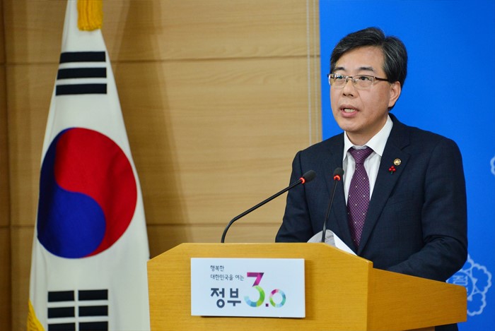 (서울=포커스뉴스) 송언석 기획재정부 차관이 28일 서중 종로구 정부서울청사 브리핑룸에서 공공기관 성과연봉제 확대 실시와 관련하여 브리핑을 하고 있다. <사진제공=기획재정부>