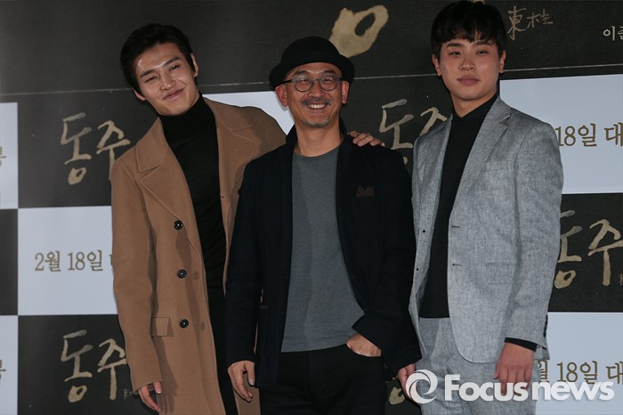 (서울=포커스뉴스) 28일 오후 서울 동대문 메가박스에서 열린 영화 '동주' 언론시사회에 참석한 배우 강하늘(왼쪽부터), 이준익(감독), 박정민이 포토타임을 갖고 있다.