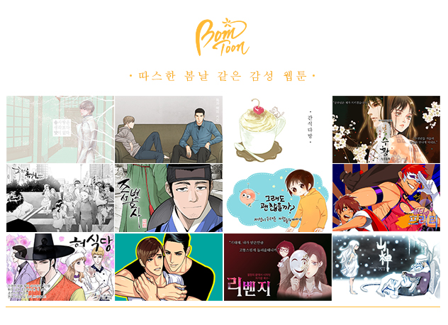 봄툰은 '모든 여성 독자들이 즐길 수 있는 프리미엄 웹툰 서비스'라는 슬로건을 내걸고 여성 독자들의 기본 장르라 할 수 있는 로맨스, 드라마, 일상, 코미디 등의 장르를 선보이고 있다. 여기에 최근 대세인 요리, 복수극, 판타지 로맨스 등 다양한 소재를 접목시킨 웹툰도 연재하고 있다.