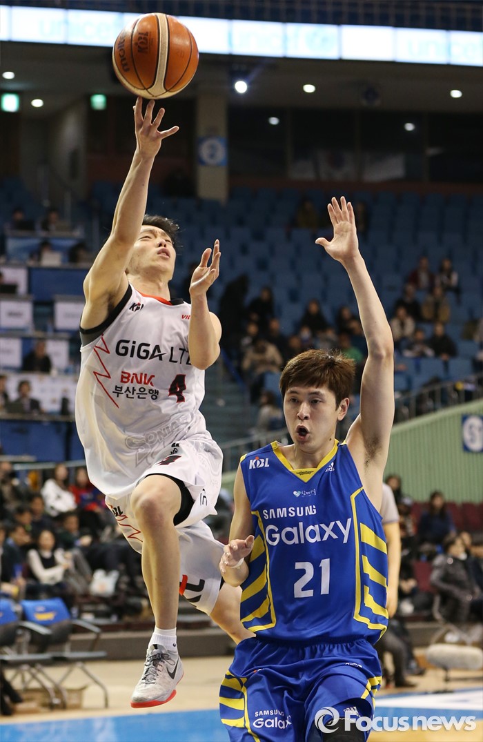 (서울=포커스뉴스) 28일 서울 잠실실내체육관에서 열린 2015-2016 프로농구 삼성-KT 경기에서 KT 이재도가 삼성 이호현의 수비를 뚫고 레이업슛을 시도하고 있다.