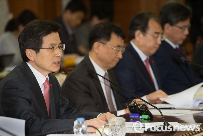 (서울=포커스뉴스) 29일 오전 서울 종로구 정부서울청사에서 열린 제7차 국민안전민관합동회의에 자리한 황교안(왼쪽) 국무총리가 모두발언 하고 있다.