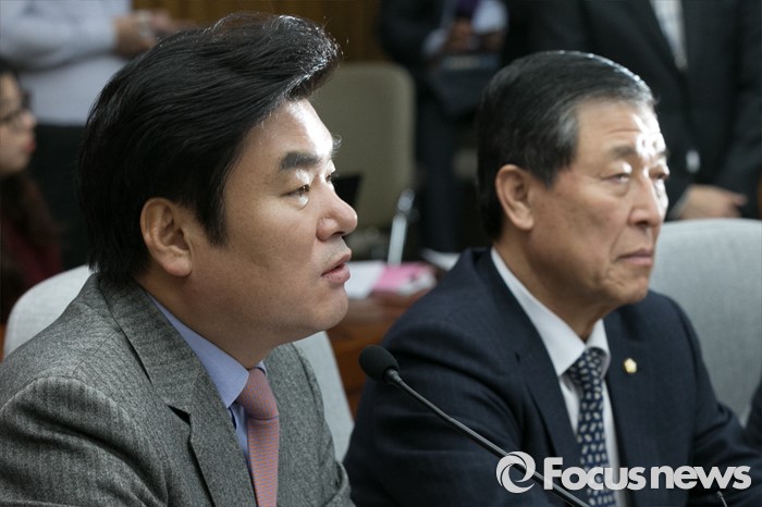 (서울=포커스뉴스) 원유철 새누리당 원내대표가 29일 오전 서울 여의도 국회에서 열린 원내대책회의에 참석해 모두발언하는 동안, 황진하 사무총장이 경청하고 있다.