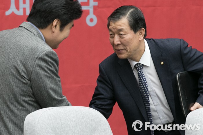 | △ 악수하는 원유철·황진하 |
