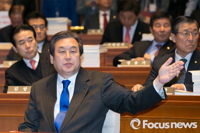 (서울=포커스뉴스) 김무성 새누리당 대표가 29일 오후 서울 여의도 국회에서 열린 의원총회에 참석해 회의진행을 주문하고 있다.