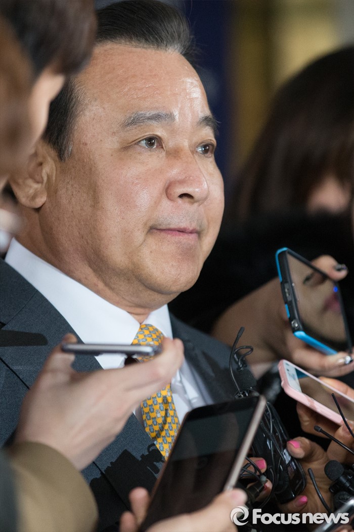 (서울=포커스뉴스) 고 성완종 전 경남기업 회장에게 불법 정치자금 3000만원을 받은 혐의로 기소된 이완구 전 국무총리가 29일 오후 서울중앙지방법원에서 열린 1심 선고공판을 끝내고 취재진의 질문을 듣고 있다. 이날 징역 8개월에 집행유예 2년, 추징금 3000만원을 선고받았다.