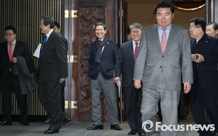 (서울=포커스뉴스) 김무성(왼쪽) 새누리당 대표가 29일 오후 서울 여의도 국회에서 의원총회를 마친 뒤 원유철(오른쪽) 원내대표와 각각 다른 곳으로 향하며 이동하고 있다.