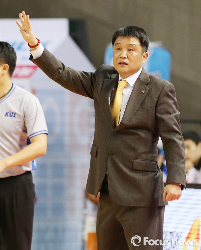 (인천=포커스뉴스) 29일 인천 삼산체육관에서 열린 2015-2016 프로농구 전자랜드-SK 경기에서 전자랜드 유도훈 감독이 손가락을 펴 보이면서 작전을 지시하고 있다.