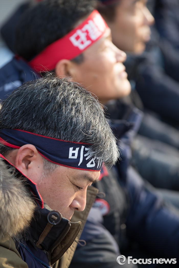 (서울=포커스뉴스) '민주노총 전국노동자대회'가 열린 30일 오후 서울광장에서 민주노총 조합원들이 정부의 '일반 해고'와 '취업규칙 변경' 양대 지침 철회와 노동개악 중단을 촉구하고 있다.