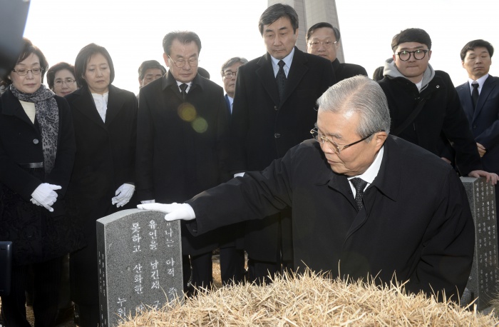 (서울=포커스뉴스) 김종인 더불어민주당 비상대책위원장이 31일 오전 광주 북구 운정동 국립 5·18민주묘지를 방문해 열사 묘역에서 국보위 참여를 사죄하고 있다. <사진제공=더불어민주당>