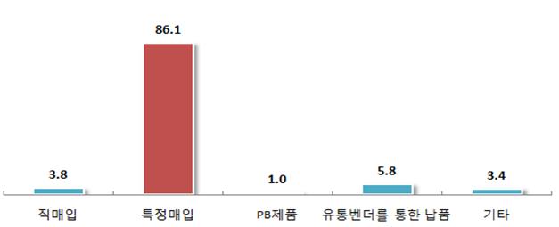 31일 중소기업중앙회(회장·박성택)가 백화점에 납품하는 208개 중소업체의 애로실태를 조사한 결과에 따르면, 백화점의 경우 직매입은 3.8%에 불과한 반면 특약매입 방식이 86.1%를 차지했다.