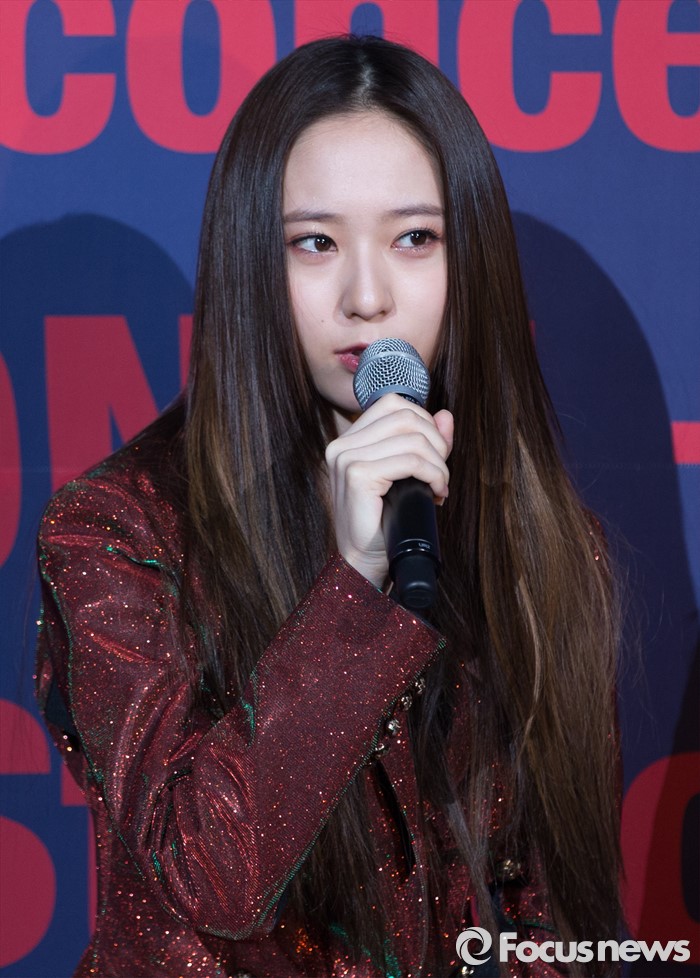 (서울=포커스뉴스) 31일 오후 서울 송파구 올림픽공원 올림픽홀에서 걸그룹 f(x) 멤버 크리스탈이 첫 단독 콘서트 'DIMENSION 4 - Docking Station' 공연에 앞서 취재진 질문에 답하고 있다.