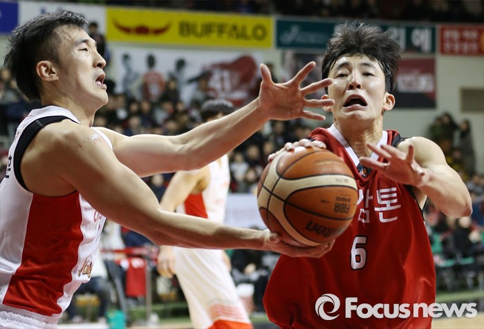 (안양=포커스뉴스) 31일 안양실내체육관에서 열린 2015-2016 프로농구 KGC-SK 경기에서 KGC 가영현과 SK 변기훈이 리바운드볼을 차지하려 달려들고 있다.