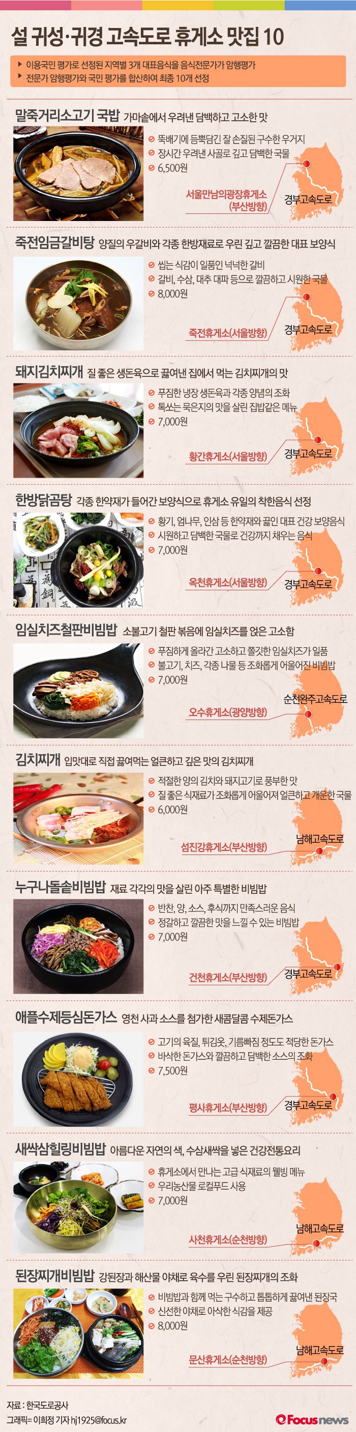 | △ [그래픽뉴스] 설 귀성·귀경 고속도로 휴게소 맛집 10 |