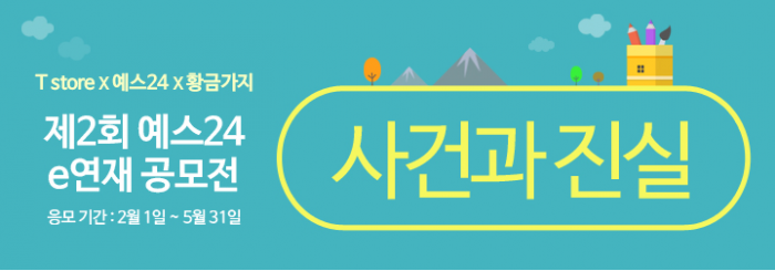 수상작은 7월 중 발표할 계획이다. 공모전 관련 자세한 내용은 T스토어 북스 모바일 앱 혹은 예스24 e연재 페이지에서 확인할 수 있다.'사건과 진실' 공동 공모전 배너.<사진제공=메타컴>