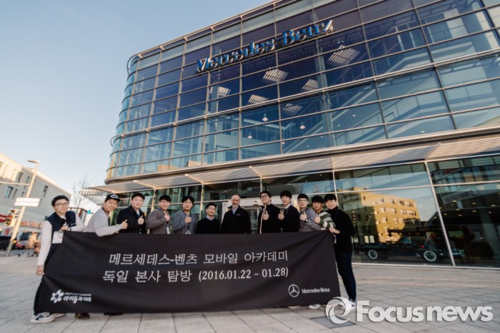 한편, 모바일 아카데미에는 현재까지 총 169명의 학생들이 참여했다. 다가오는 3월 봄학기에는 모바일 아카데미 4기가 출범한다.독일의 벤츠 글로벌 트레이닝 센터 앞에서 모바일 아카데미 독일 본사 탐방단이 기념 사진을 찍고 있다. <사진제공=메르세데스-벤츠 코리아> 2016.2.1. 김현이 인턴기자