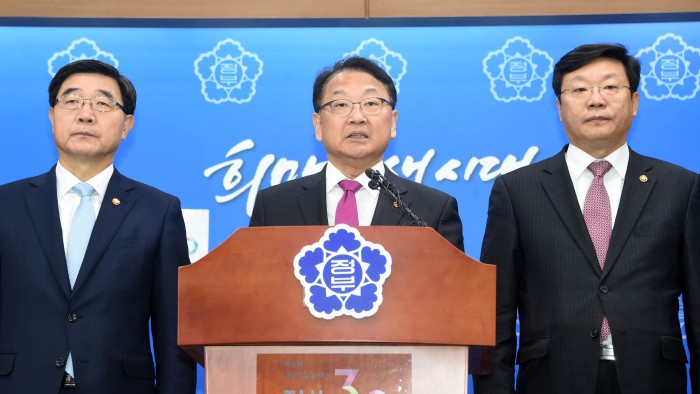 누리과정에 대해선 "교육감이 예산을 편성하면 좋고 안 해도 그만인 재량사업이 아니다"라며 "계속해서 예산을 편성하지 않는다면 법을 고쳐서라도 누리과정 예산을 안정적으로 편성하는 방안을 검토할 것"이라고 말했다.유일호 부총리 겸 기획재정부 장관이 2월 1일 정부세종청사에서 청년과 아이들의 미래를 위해 '국민 여러분께 드리는 말씀'으로 관계장관들과 함께 호소문을 낭독하고 있다. <사진제공=기획재정부>