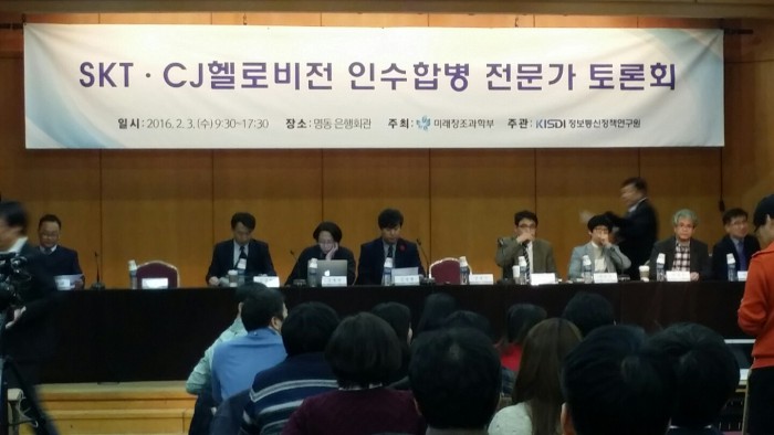 (서울=포커스뉴스) 미래창조과학부가 3일 주최한 ‘SK텔레콤의 CJ헬로비전 인수합병 전문가 토론회’에서 방송의 역할을 두고 열띤 토론이 벌어졌다. SK텔레콤이 CJ헬로비전을 인수하면 방송의 공공성을 해칠 것이라는 주장과 투자가 늘어나 플랫폼 경쟁력이 강화될 것이라는 주장이 맞섰다.