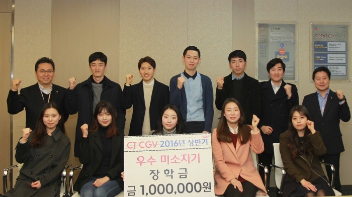 CJ CGV는 이 자리에서 각 지점 CM(문화의 매개자)의 추천을 거쳐 우수 미소지기로 뽑힌 총 37명에게 각 100만원의 장학금과 장학증서를 전달했다.