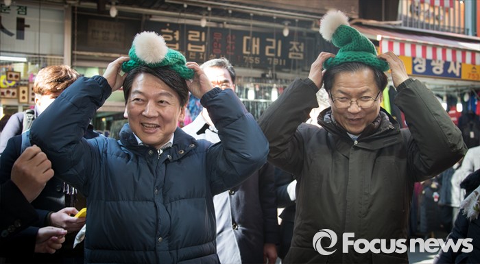 | △ 털모자 쓰는 안철수와 천정배 |