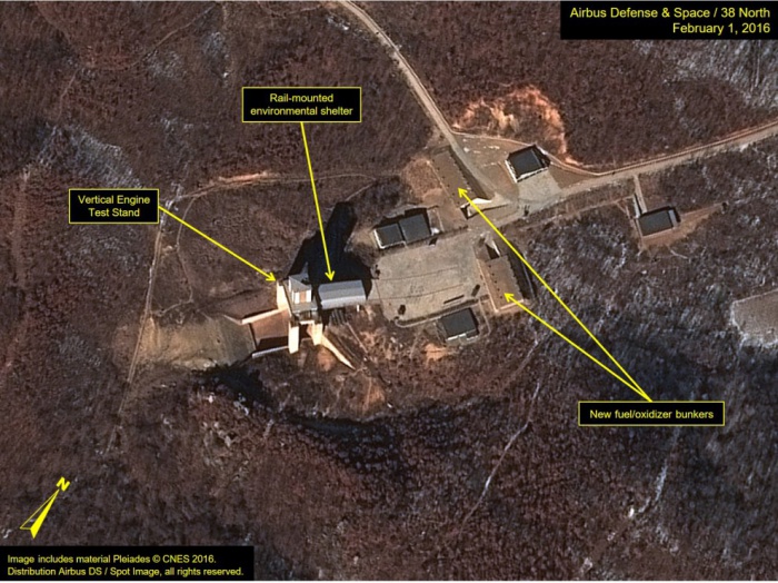 방북 일정을 마치고 4일 귀국한 북핵 6자회담 중국 수석대표 우다웨이(武大偉) 한반도사무특별대표는 북한의 위성 발사 통보와 관련해 "해야 할 말은 모두 말했다"며 "결과가 어떻게 될지는 현재로써 알 수 없다"고 말했다.북한이 미사일 연료 주입을 시작했다는 관측이 나왔다. 일본 아사히 신문은 미 국방 당국자를 인용해 북한이 동창리 발사장에서 탄도 미사일 연료 주입 움직임을 보였다고 5일 보도했다. 사진은 북한 전문지 미국 38 North가 3일(현지시간) 올린 북한 동창리 서해 발사기지. 엔진테스트를 할 수직 스탠드가 설치되고 있다. <사진출처=38 North> 2016.02.04 포커스포토