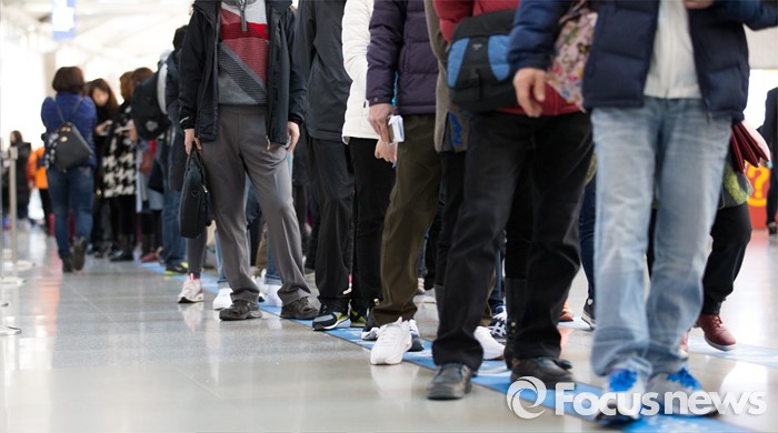 | △ 설 연휴 앞두고 줄지어선 출국장 |