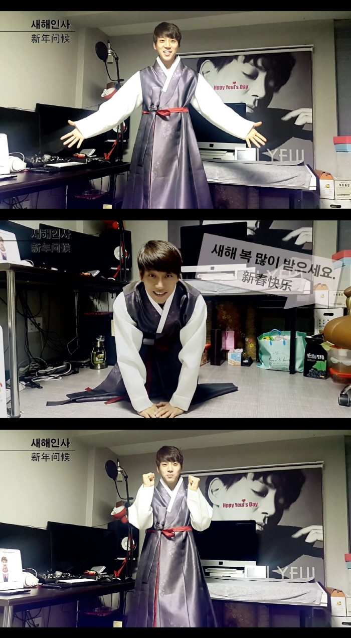 (서울=포커스뉴스) 가수 황치열이 고운 설빔을 입고 팬들에게 세배를 했다.