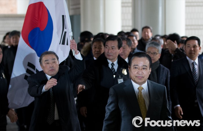 태극기를 흔들며 위풍당당 이 전 총리를 뒤따르던 무리들도 한동안 말이 없었다.