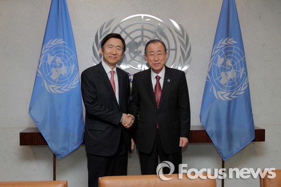(서울=포커스뉴스) 미국 뉴욕을 방문 중인 윤병세 외교장관이 9일 오후(뉴욕시각) 유엔 본부에서 반기문 유엔사무총장을 만나 북한의 연이은 도발 감행에 대해 협의했다.