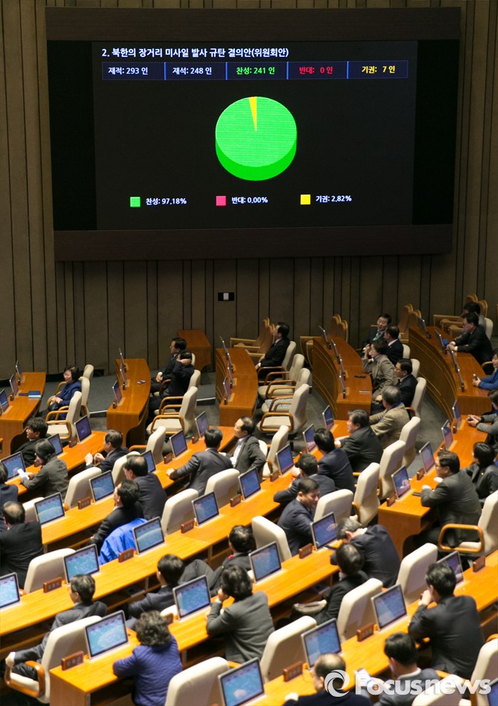 (서울=포커스뉴스) 국회가 10일 본회의를 열고 '북한의 장거리 미사일 발사 규탄 결의안'을 채택했다.