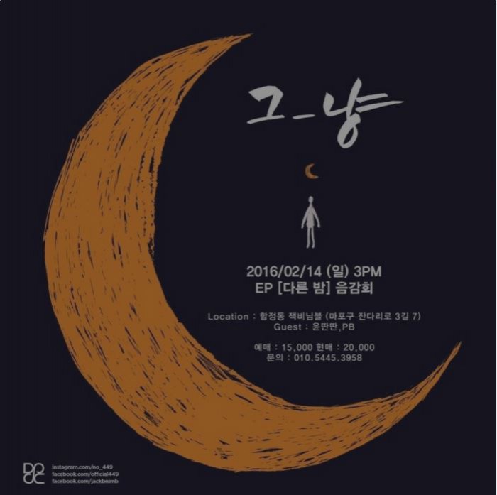 네이버 모두(modoo)의 '다른 밤' 음감회 홈페이지를 통해 예매 가능하다.신인 싱어송라이터 그_냥이 오는 14일 오후 3시 서교동 라이브홀 잭비님블에서 첫 음감회를 갖는다.사진은 음감회 포스터.<사진제공=닥터심슨컴퍼니>
