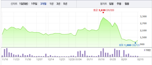 지난달 알뜰폰 신규 가입자 수는 11만1897명으로, 하루 평균 3730명이 신규로 가입한 것으로 집계됐다.주가흐름<사진출처=네이버 캡쳐>