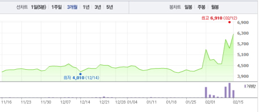 베이징의 수도의과대학 폐암진단치료센터에서는 2020년까지 중국에서 흡연과 초미세먼지 등으로 인해 매년 8만명의 폐암 환자가 발생할 것이라는 보고서를 발행하기도 했다.주가흐름<사진출처=네이버 캡쳐>